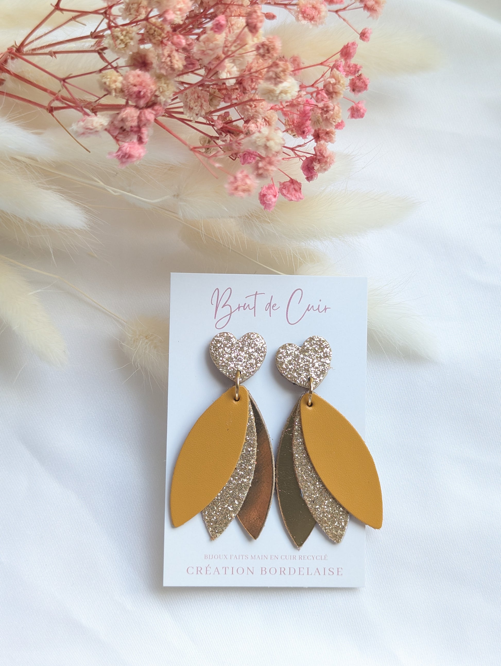 Boucles BIANCA en cuir recyclé et revalorisé, clous en acier inoxydable. Environ 6cm de longueur, ultra légères !